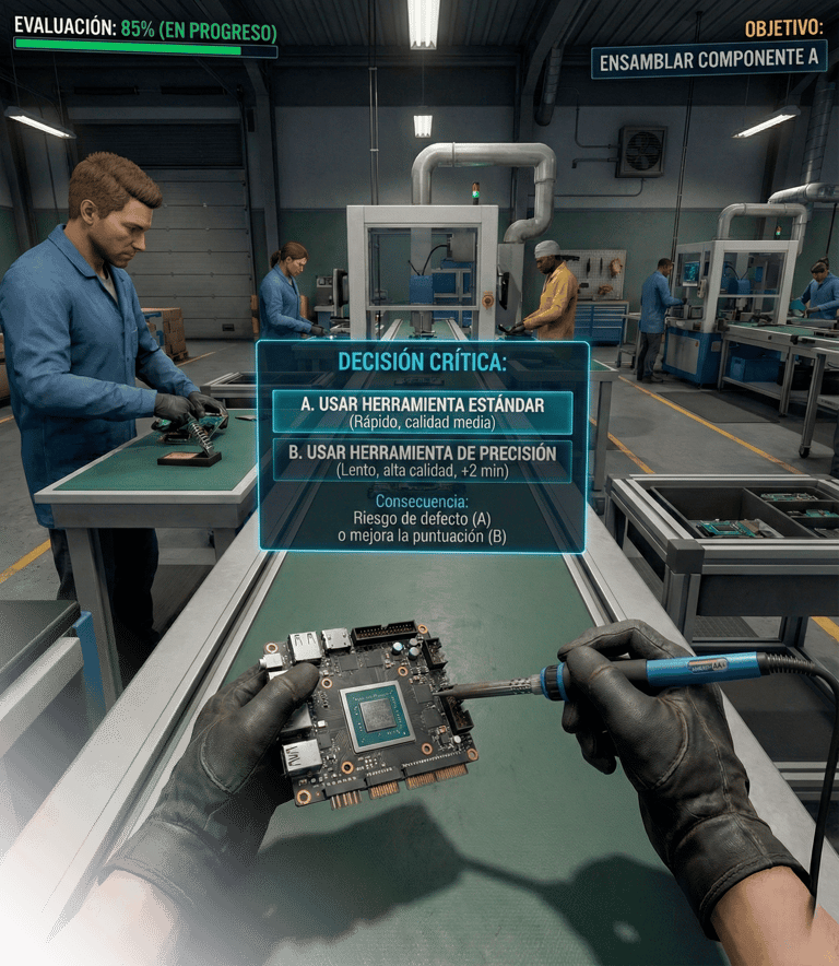 El usuario no entra a un curso, entra a una historia interactiva donde asume un rol dentro de tu empresa.